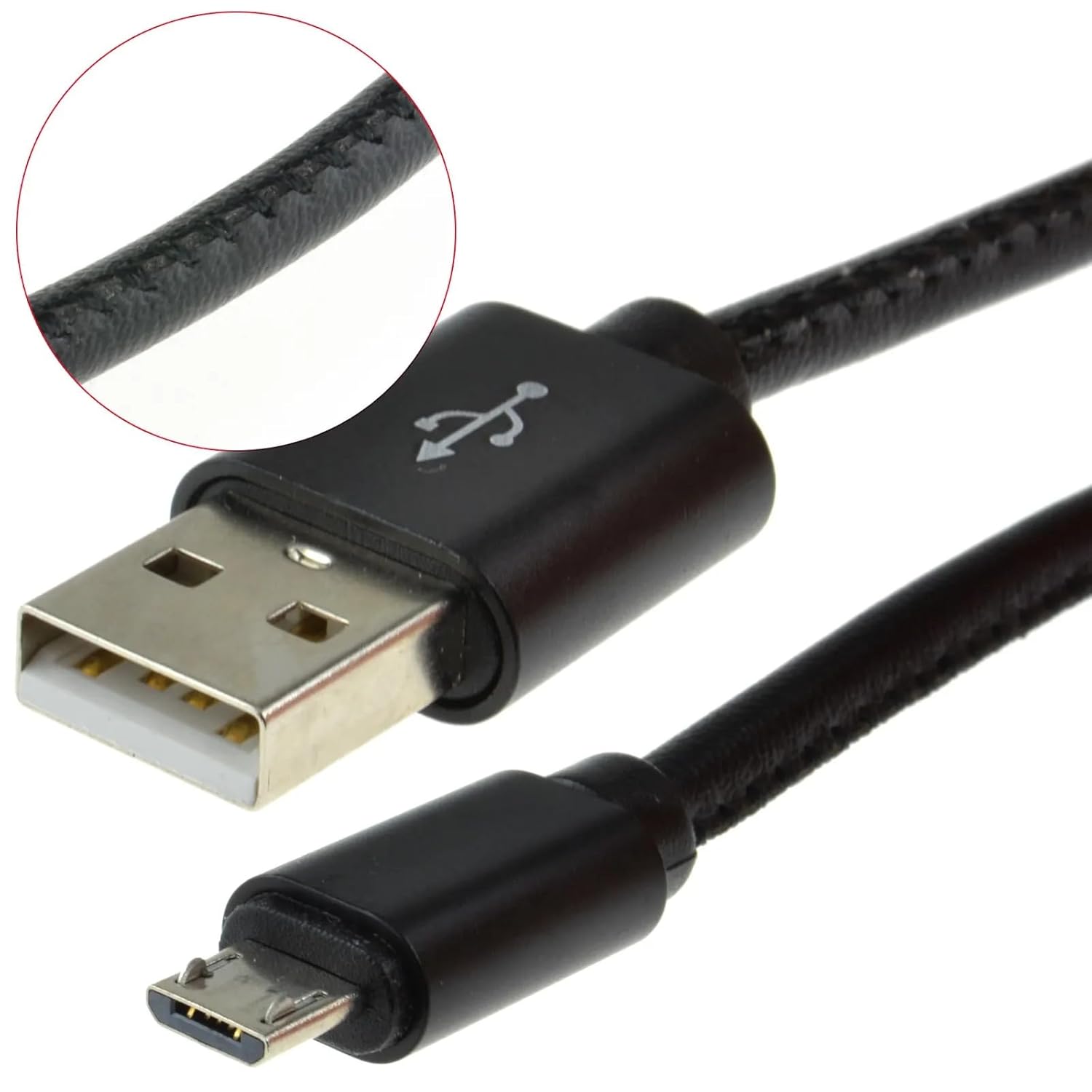 Charge and sync your devices with this 2 metre leather braided Micro USB to USB A cable. Built from 22AWG full copper conductors, it supports fast charging and stable USB 2.0 data transfer.