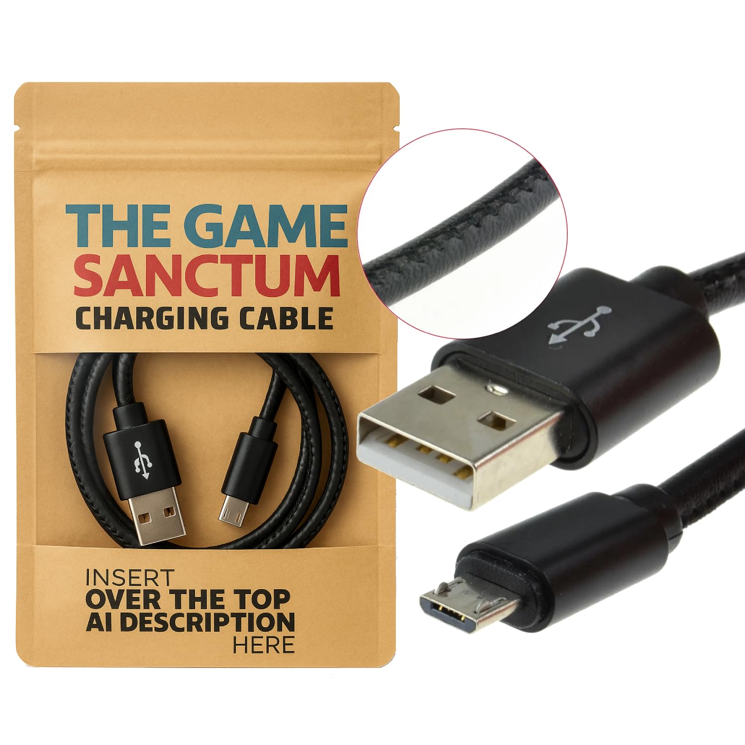 Leather Micro USB Cable 2m (For PS4 & Xbox One Controller)